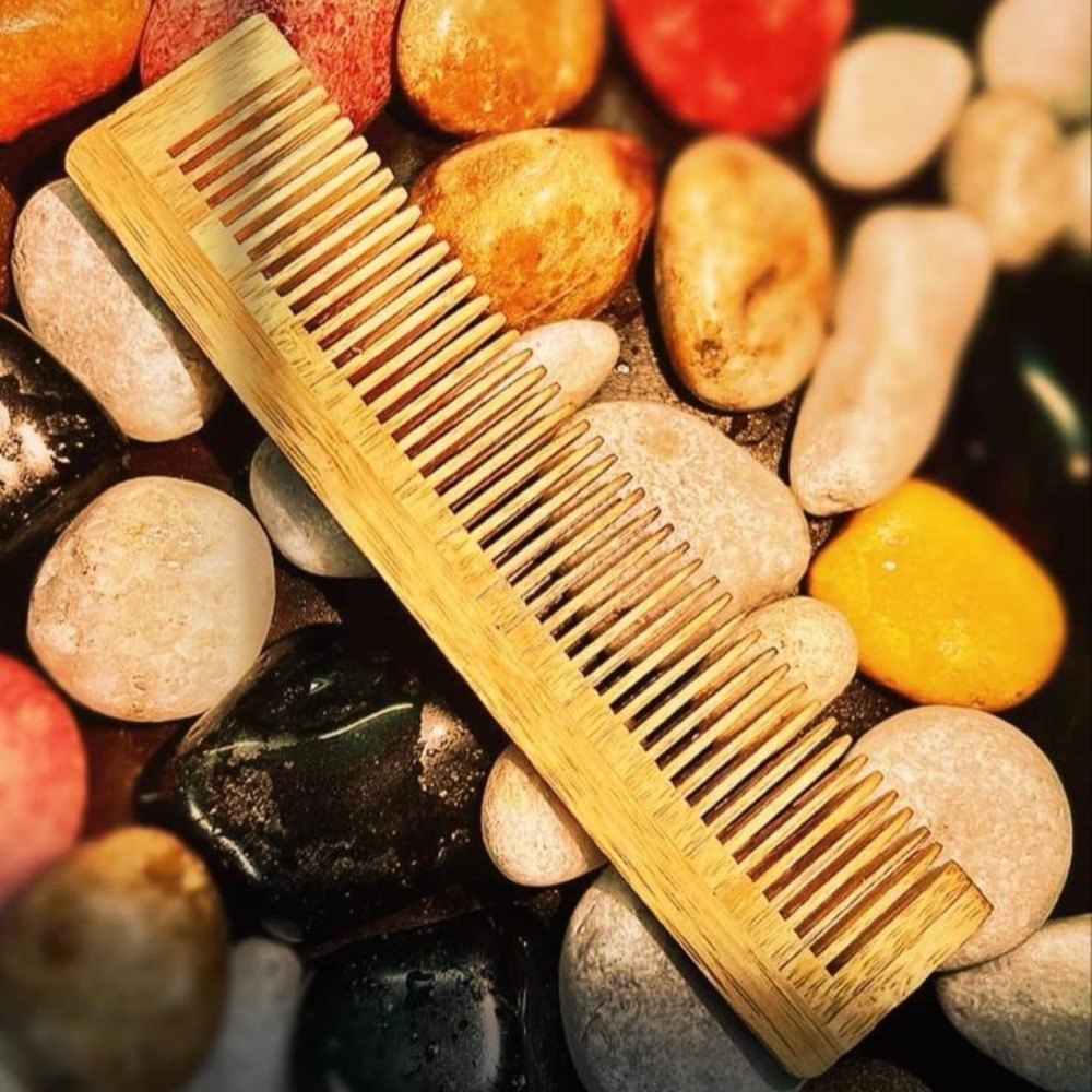 This Natural Neem Wood Hair Comb is crafted from eco-friendly neem wood, known for its anti-bacterial and anti-fungal properties. Gentle on the scalp, it helps reduce dandruff and prevents hair damage while promoting healthy hair growth. The smooth, rounded teeth glide through hair without causing static or breakage, making it suitable for all hair types. With its natural and durable design, this comb not only provides a soothing experience but also contributes to a sustainable, chemical-free hair care routine. Ideal for daily use, it helps maintain shiny, strong, and manageable hair.