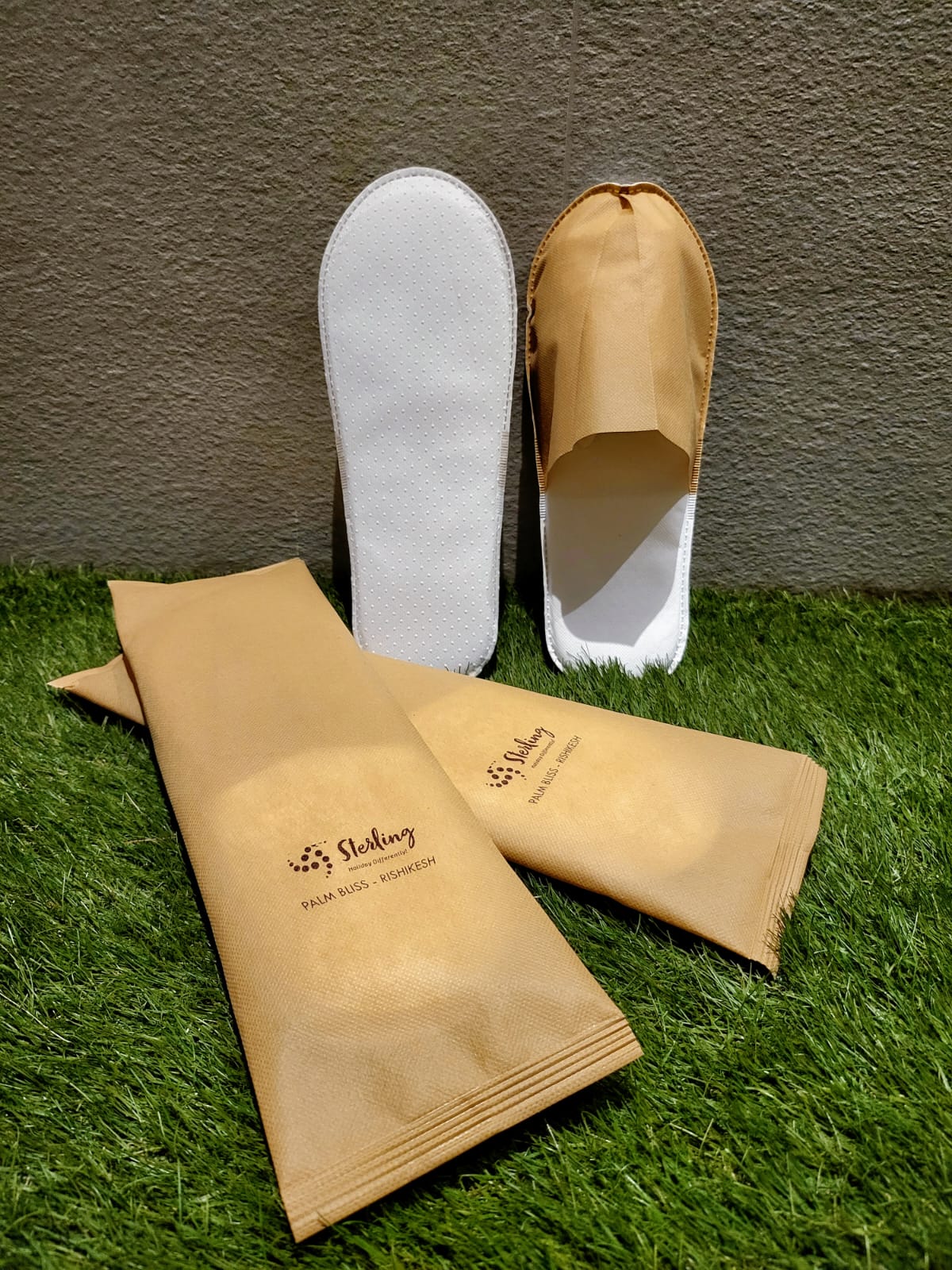 Non-woven disposable hotel and spa slippers are lightweight, comfortable, and hygienic footwear designed for single-use in hospitality and wellness environments. They are crafted from high-quality, breathable non-woven fabric, ensuring a pleasant and comfortable experience for guests. These slippers are ideal for maintaining hygiene and providing a touch of luxury, making them a preferred choice for hotels, resorts, spas, and salons.