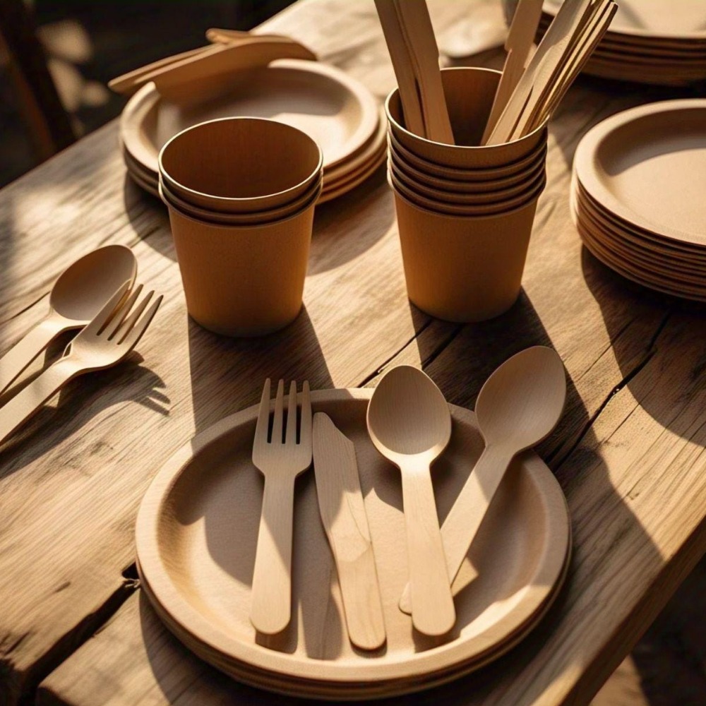Our wooden disposable crockery and cutlery offer a sustainable and stylish alternative to plastic, crafted from 100% natural, biodegradable wood. Durable, splinter-free, and lightweight, they are perfect for serving meals at parties, weddings, picnics, cafes, and catering events. These eco-friendly utensils provide a premium dining experience while being safe for both hot and cold foods. Compostable and chemical-free, our wooden crockery and cutlery help reduce plastic waste, making every meal environmentally responsible and elegant.